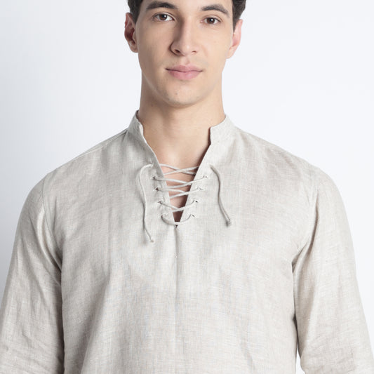 Lace-up henley shirt - COWBOY-CLAY - 418