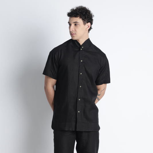 Mandarin collar short-sleeve shirt - NOIRE - 156