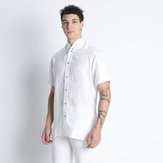 Mandarin collar short-sleeve shirt - WHITE - BLANC