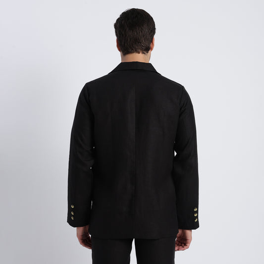 GUERRERO Classic Linen Double-Breasted Blazer - Black