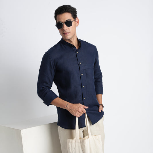 Korean Band Collar Shirt ODIN- INDIGO-70