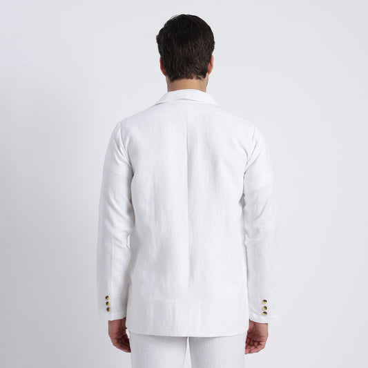GUERRERO Classic Linen Double-Breasted Blazer - WHITE - BLANC