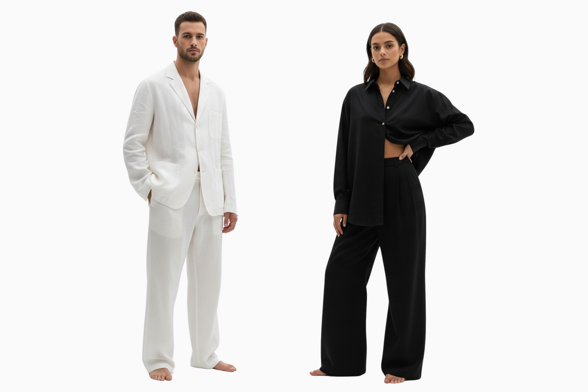 Black and white, two opposites that speak the same language of balance, purpose, and timelessness. Each piece, crafted from 100% pure linen, embodies strength in restraint, elegance in understatement, and confidence in calm.